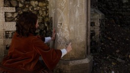 Calling upon the character of Eliza Cook, a Victorian poet from Bermondsey with a ‘love for women’ that championed education for all, the Ames/Eliza hybrid takes us around Ingress Abbey - a stately home now swallowed by a housing estate - where Eliza wrote much of her work. Hybridity has also had its uses in queer history, assembling and gathering the parts of presentation you like and cobbling together something new, capable of slipping between. The artist's performance of Eliza is as though to draw a silhouette of the character and of Ames themselves over one another as a venn diagram. With the overlapping centre of Eliza as a self taught poet, Ames as self taught artist, both as queer, from working class backgrounds… but leaving room for the differences to seep out. Embodying a spillage of one moment of time into another and back again, messing with simultaneity to create ‘queer asynchronies’ Elizabeth Freeman) like ruptures in the way things are or should be. All the while settling in the rather familiar and comfortable to camera style mockumentary tropes - crash zooms and The Office type gotchya’s abound.