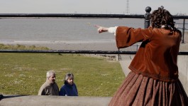 Appropriating a mockumentary format, ELIZA is inspired by the lesser known, lesbian, working class, Victorian, 'poet of the people' Eliza Cook. Like unfolding a game of exquisite corpse to reveal an Alan Partridge style commentator, in the get up of a 19th century woman, with the cadence of a camp northerner: ELIZA drags both the viewer, the unsuspecting public and the artist back and forth through time to explore the overlapping edges of redevelopment, place and queer temporalities. Commissioned by Cement fields + Estuary festival, 2021.